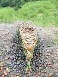 江边崖壁上有很多石龛,以前周围的居民用来存放死者的骨灰盒,希望死者能够永远的怀望这条曾流经他们生命的河。在石壁下面的这件作品,诉说的就是生与死。