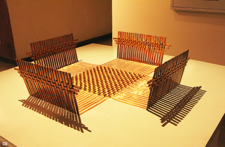 在“创意中国”的今天,我们仿佛见到了创意产业前所未有的丰富多彩和欣欣向荣。在它背后,我们得到更多的却是空和虚的恐慌。朱老师策划的本次展览选择的是“立体、空间”这样简单传统的主题,却通过有效执行到一定的深度,散发出真实的魅力。执行深度证实了专业的存在价值。我想,学生在此过程中,应该感觉自己是真真正正地活着。